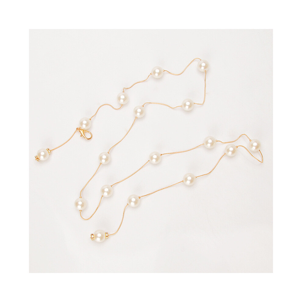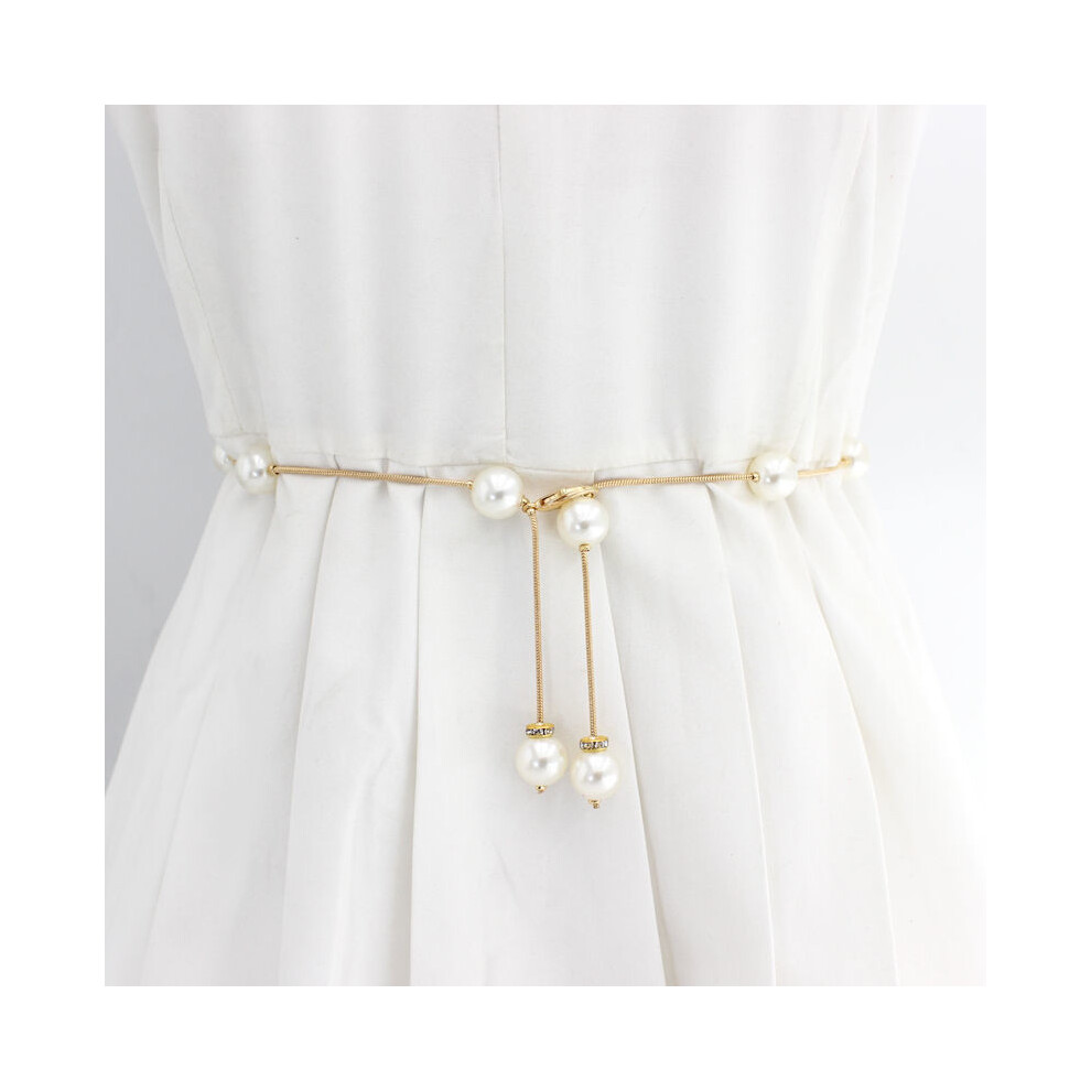 (Gold) Pearl Metal Waist Chain Women Hook Closure Casual Elegant Dress Waist Jewelry