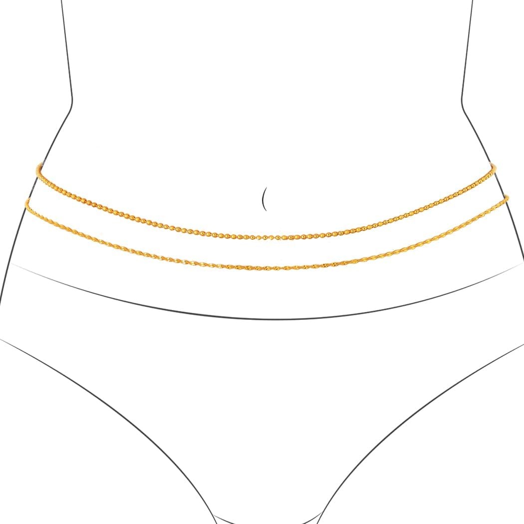 14K Gold Plated Waist Chain for Women - Adjustable Belly Chain Body Jewelry for Bikini Beach & Daily Wear