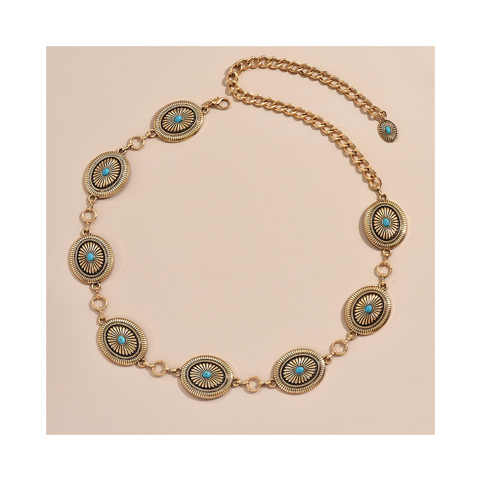 (Gold Turquoise) Waist Womens Chain With Artificial Turquoise Inlay Design For Casual Fashionable