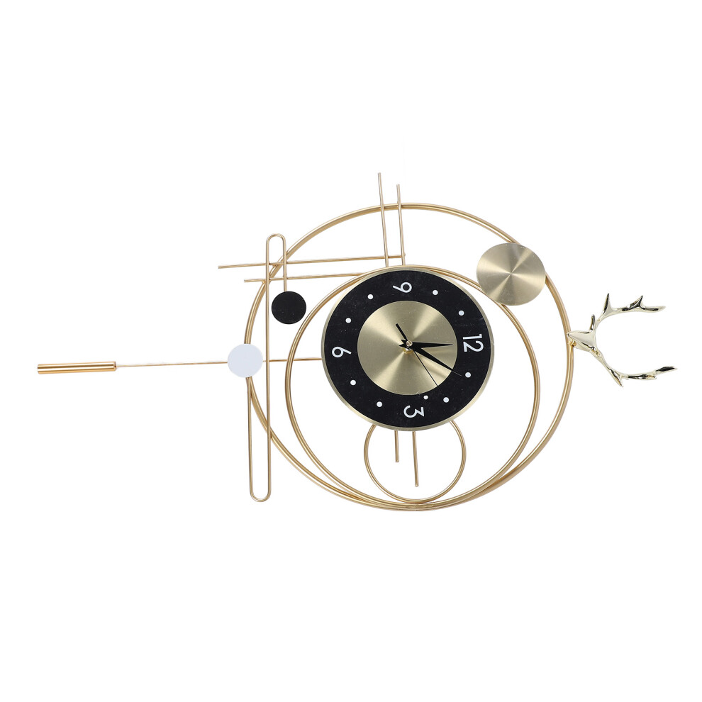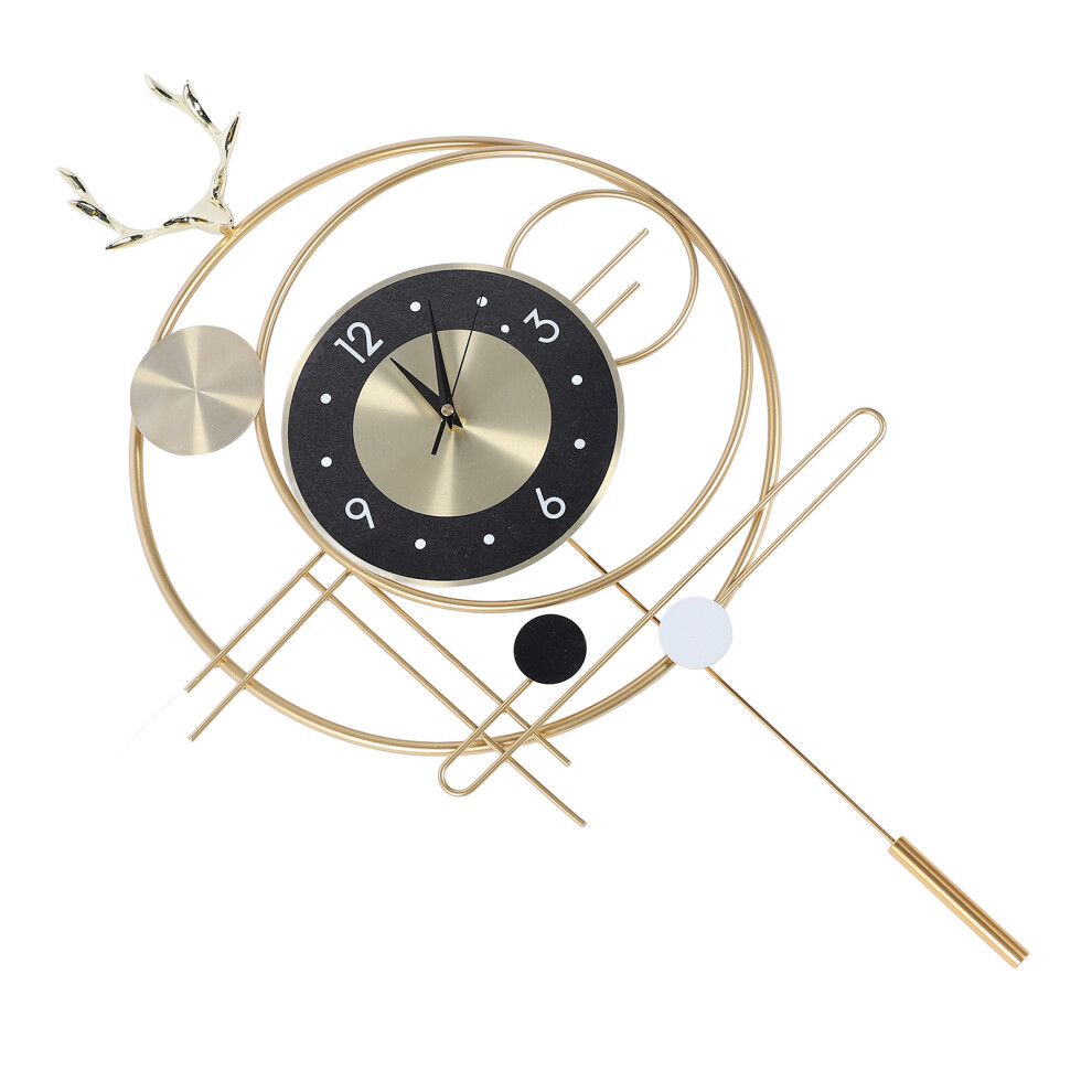 Wall Clock for Living Room Decor Metal Deer Horn Swinging Gold Pendulum Geometric Wall Clock Decor for Office Bedroom
