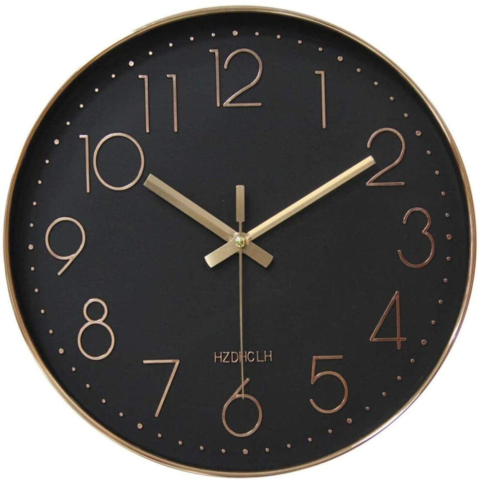 (Black Gold) Wall Clock 12 Inch Silent Non Ticking Clock for Living Room Bedroom Kitchen Office