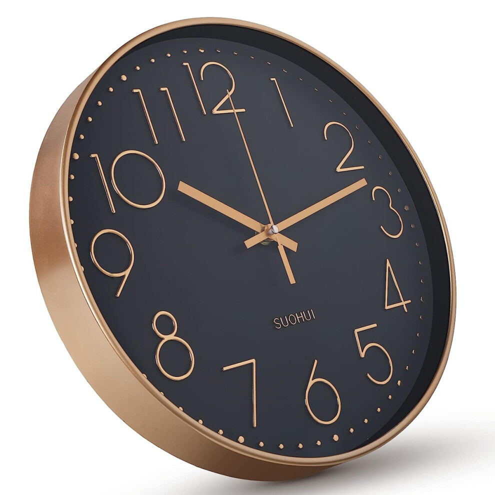 Rose Gold Black Wall Clock for Minimalist Style, Silent Non-Ticking Quartz Sweep Decorative Battery Operated, Easy to Use for Any Room