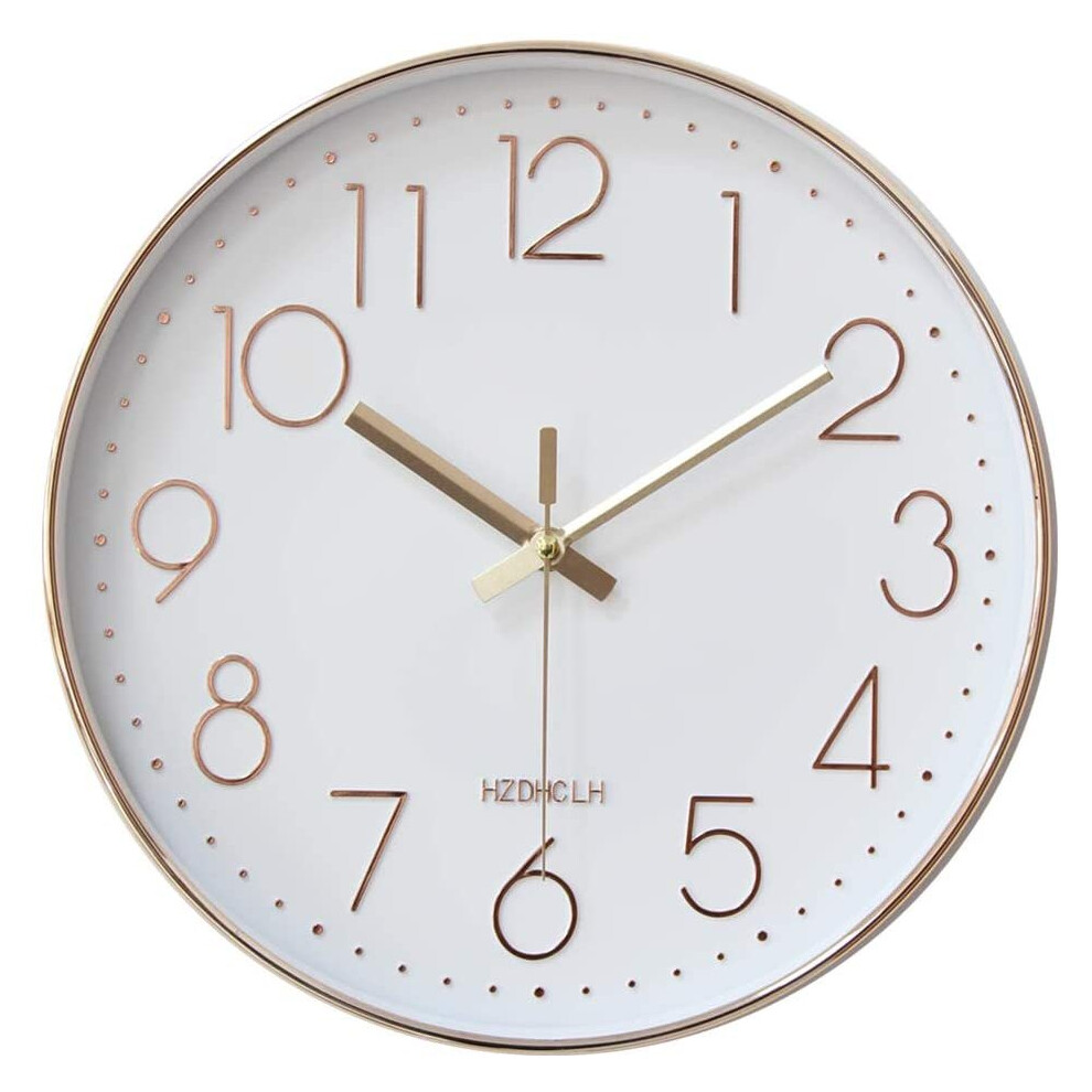 (Rose Gold) Wall Clock 12 Inch Silent Non Ticking Clock for Living Room Bedroom Kitchen Office