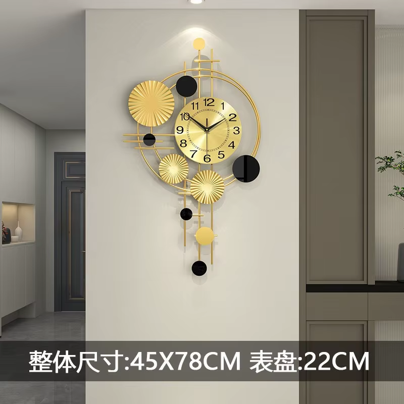 Gold Color Wall Clock Nordic Luxury Living Room Wall Hanging Punching Restaurant