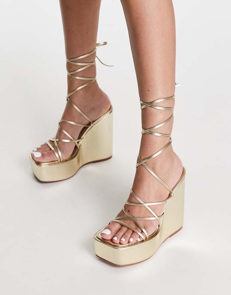 Gold womens wedges