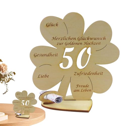 50 Wedding Table Decorations | Gold Wedding Four Wooden Decoration - and Meaningful Wooden Sign Guest Book for Parents Grandparents