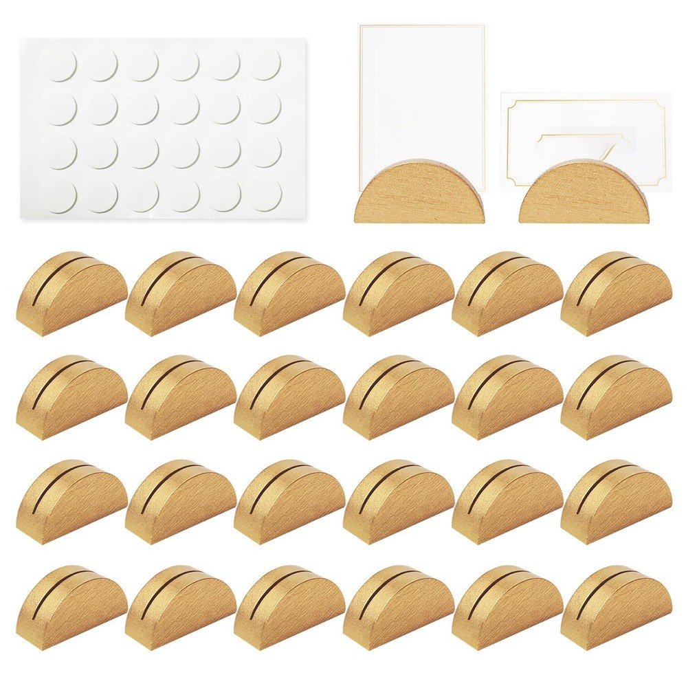 24 Pieces Gold Wooden Place Card Holders, Semicircular Table Number Stands3856