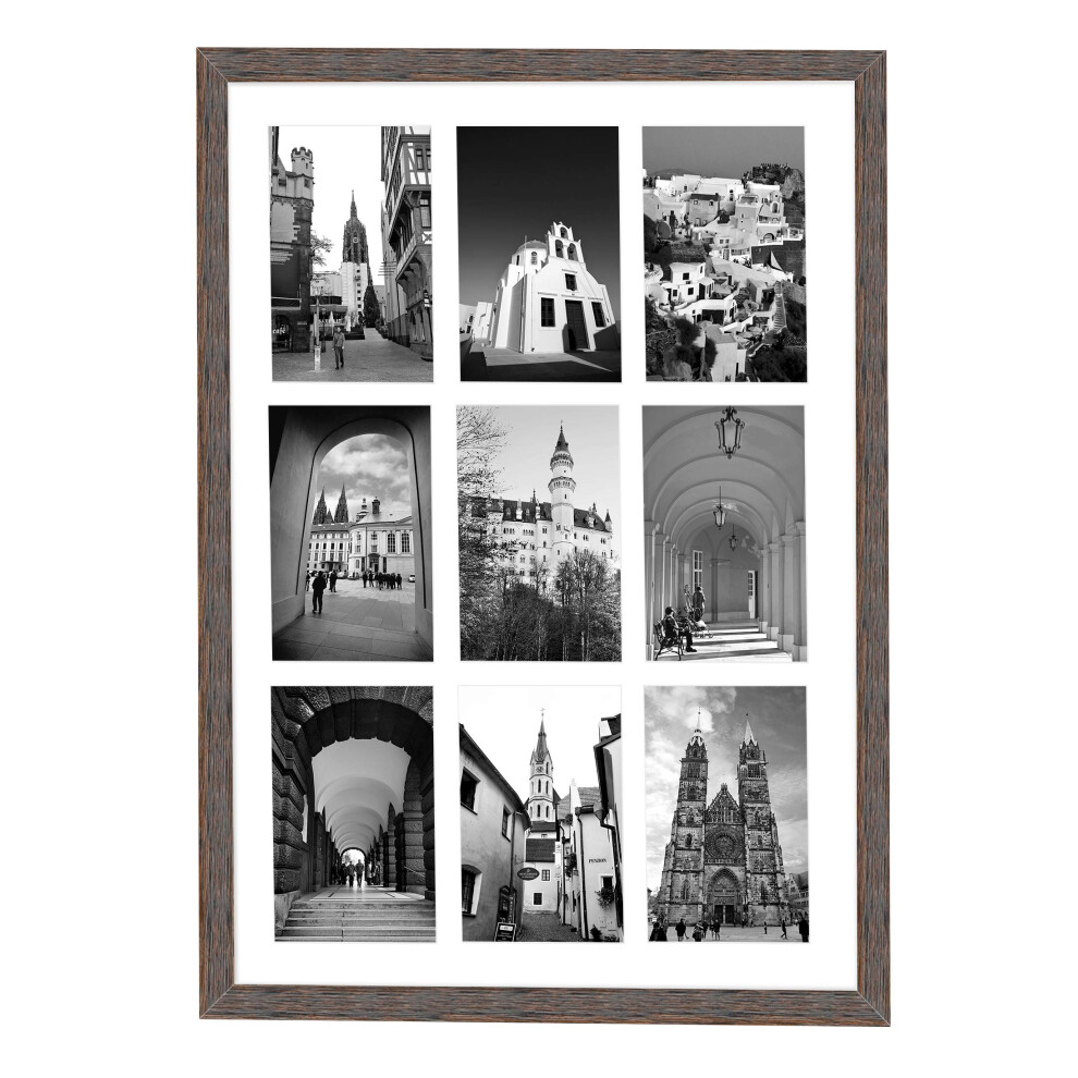 Golden State Art 13.6x19.7 Distressed Brown Wooden Collage Frame - White Mat - Fits Nine 4x6 Photos/Pictures - Sawtooth Hanger - Swivel Tabs - Wall M