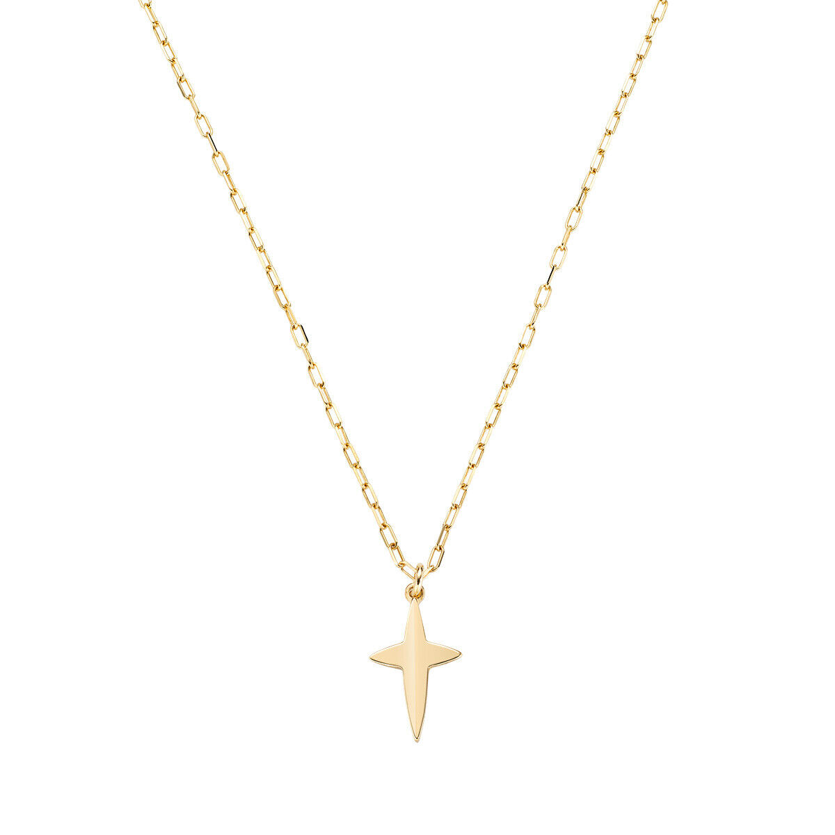 Aretas Small Gold Plated Stainless Steel Cross Necklace for Women Men Boys Girls Christian Golden Religious Cross Pendant Chain 18 Inches