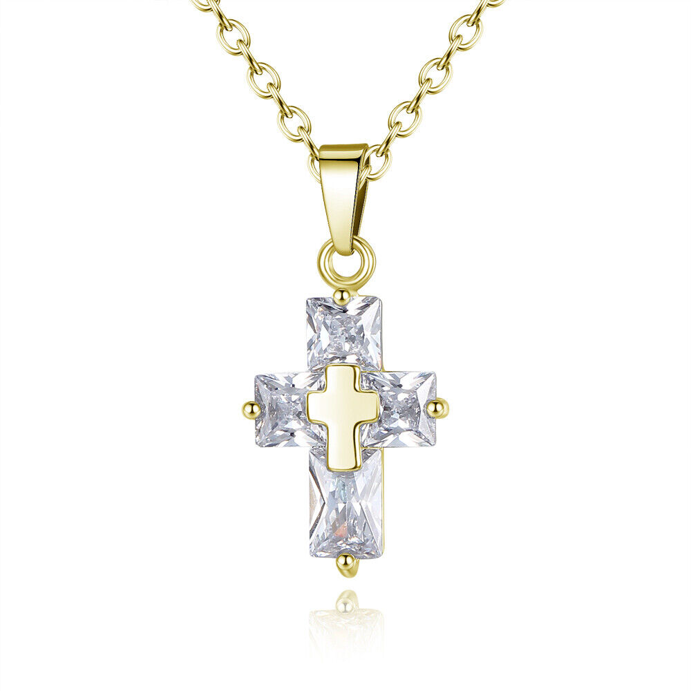 Clear crystal Golden cross Necklace gold plated woman jewellery gift UK seller