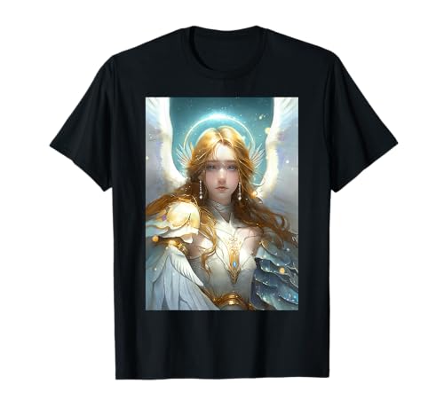 Cute Anime Crying Angel With White Wings and Golden Halo T-Shirt