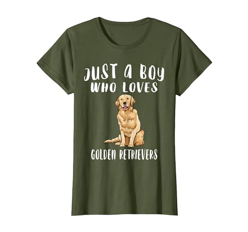 Just A Boy Who Loves Dogs Golden Retriever T-Shirt, Women, Olive Green, X-Small