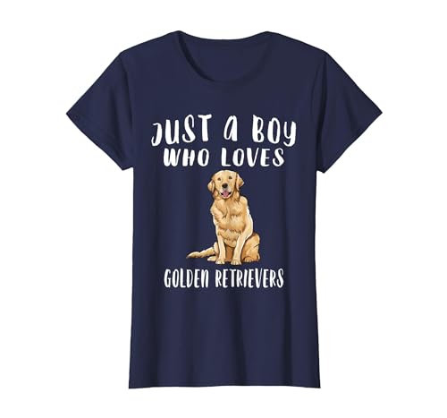 Just A Boy Who Loves Dogs Golden Retriever T-Shirt, Women, Navy Blue, Small