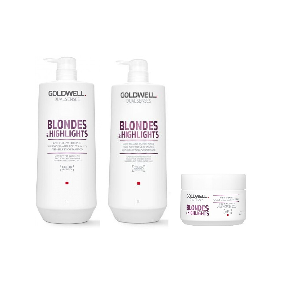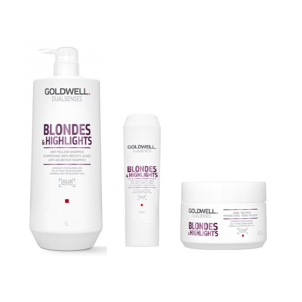 Goldwell Dualsenses Blondes & Highlights A-Y Shampoo 1000ml, Conditioner 1000ml and 60sec Treatment 200ml