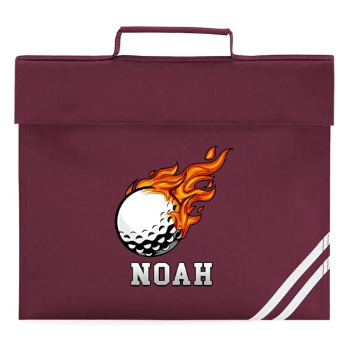 Kids Personalised Golf Book Bag Boys Girls Custom Name Flame Design for Primary Reception Infants Back to School Gift, One Size, Maroon