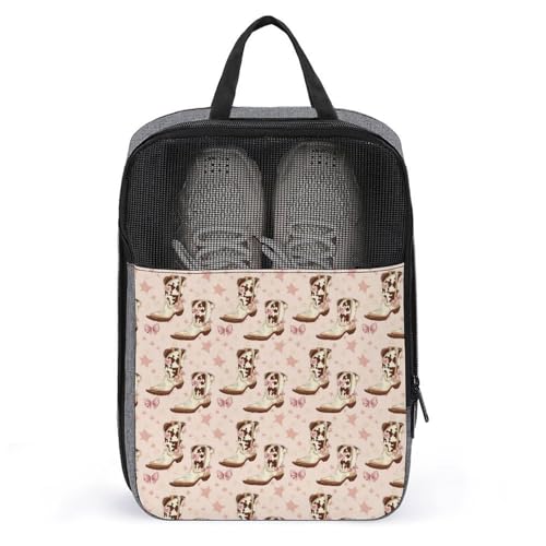 Golf Shoe Bags for Travel Women Men - Bow Cowboy Boots Print Travel Shoe Bags for Packing In Suitcase, Dance Pointe Bowling Soccer Cleat Sneaker Bag Organizer For Gym with Zipper