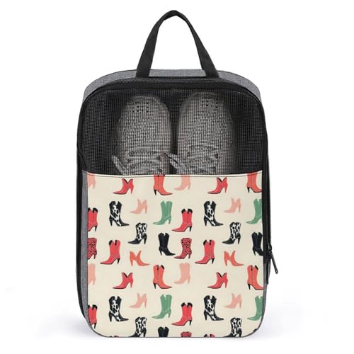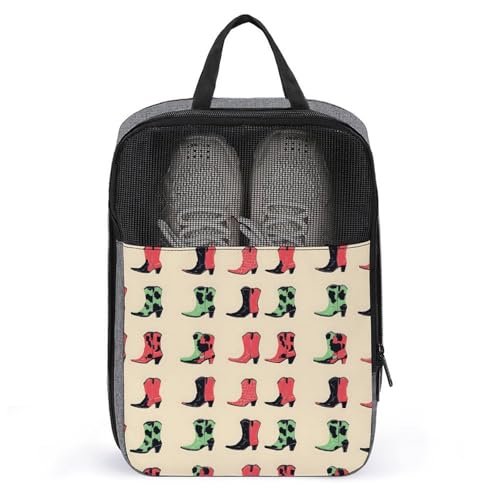 Golf Shoe Bags for Travel Women Men - Colorful Cowboy Boots Print Travel Shoe Bags for Packing In Suitcase, Dance Pointe Bowling Soccer Cleat Sneaker Bag Organizer For Gym with Zipper