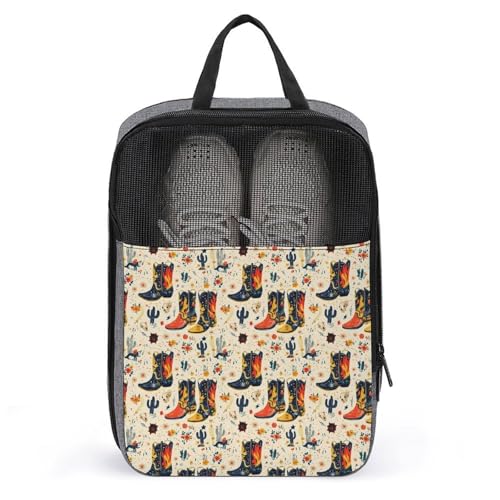 Golf Shoe Bags for Travel Women Men - Western Cactus Cowboy Boots Print Travel Shoe Bags for Packing In Suitcase, Dance Pointe Bowling Soccer Cleat Sneaker Bag Organizer For Gym with Zipper