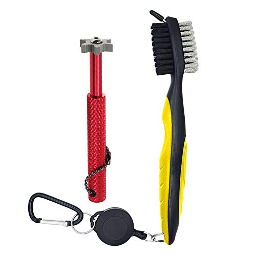 QHALEN Brush and Groove Cleaner Set 2 Ft Retractable Zip-line Aluminum Carabiner for All Golf Irons and Clubs Clean