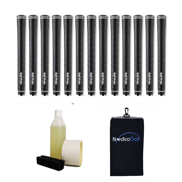 Golf Pride Tour Wrap 2G Midsize Black Grip kit - 13 grips, clamp, solvent, tape, towel