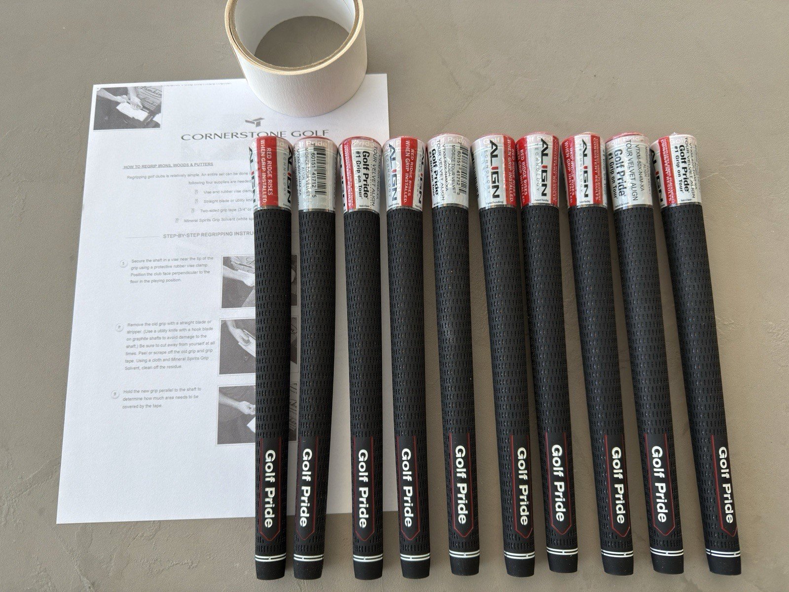Golf Pride Tour Velvet ALIGN MIDSIZE Golf Grips x 10 + Tape and instructions
