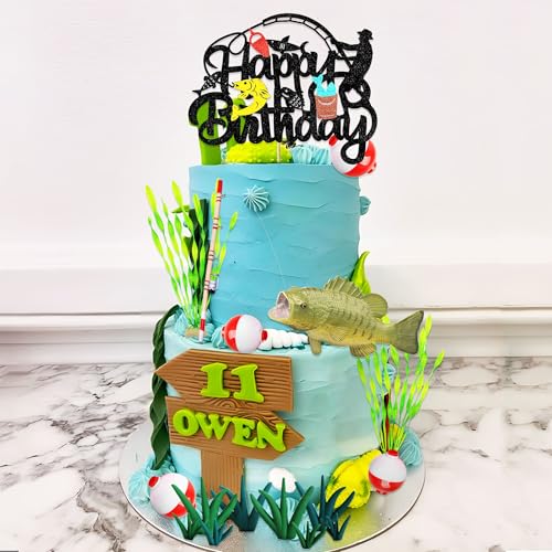 JeVenis Fishing Cake Topper Fishing Cake Decorations Gone Fishing Cake Topper Fishing Birthday Party Decorations for Baby Shower Birthday Party Supplies