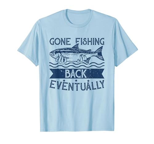 Best Fun Adult Men Humor I Gone Fishing Back Eventually T-Shirt, Men, Baby Blue, X-Large