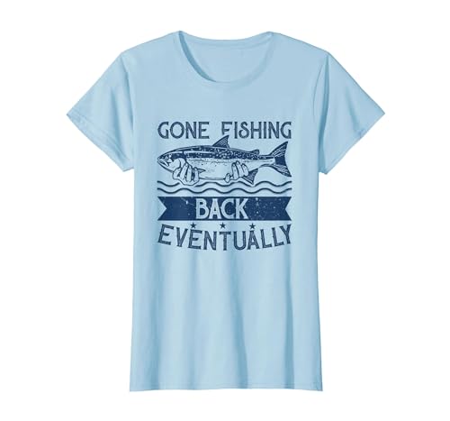 Best Fun Adult Men Humor I Gone Fishing Back Eventually T-Shirt, Women, Baby Blue, Small