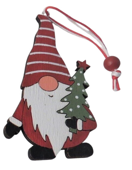 Small Wooden Gonk with Tree Christmas Tree Decoration by Giftware Trading