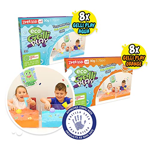 ZIMPLI - 16 x Eco Gelli Play, Magically turns water into thick, colourful goo, Children's Montessori Preschool Play Toy, Eco-Friendly Play Toy