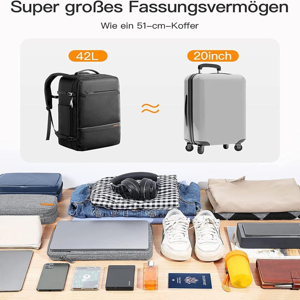 YOUCAI Cabin Bags Expandable Travel Backpack Underseat Carry On Backpack Hand Luggage for Air Travel Laptop Rucksack Fit Casual Daypack School Bag Black 29x17x44cm