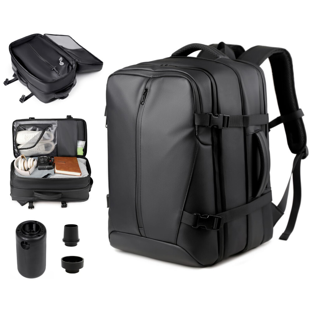 SZLX Vacuum Backpack Travel Bag with Pump,New Ryanair Cabin Size Bag 40x30x20 Backpack Wizz air,Large Travel Backpack Women Men Carry On Casual Daypack Fit 14 Inch Laptop Shoes Compartment,Z15-Black