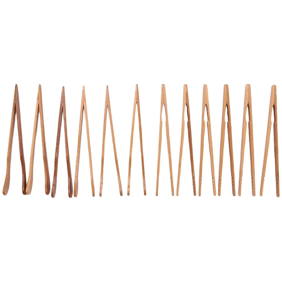 12-piece bamboo toaster tongs, 7-inch wooden kitchen tongs, reusable wooden cooking tongs compatible with toast and cookies