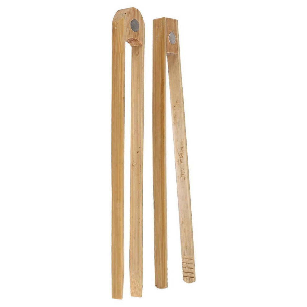2 Magnetic Bamboo Toaster Tongs, 22 cm Wooden Kitchen Toaster Tongs compatible with Cooking, Natural Bamboo