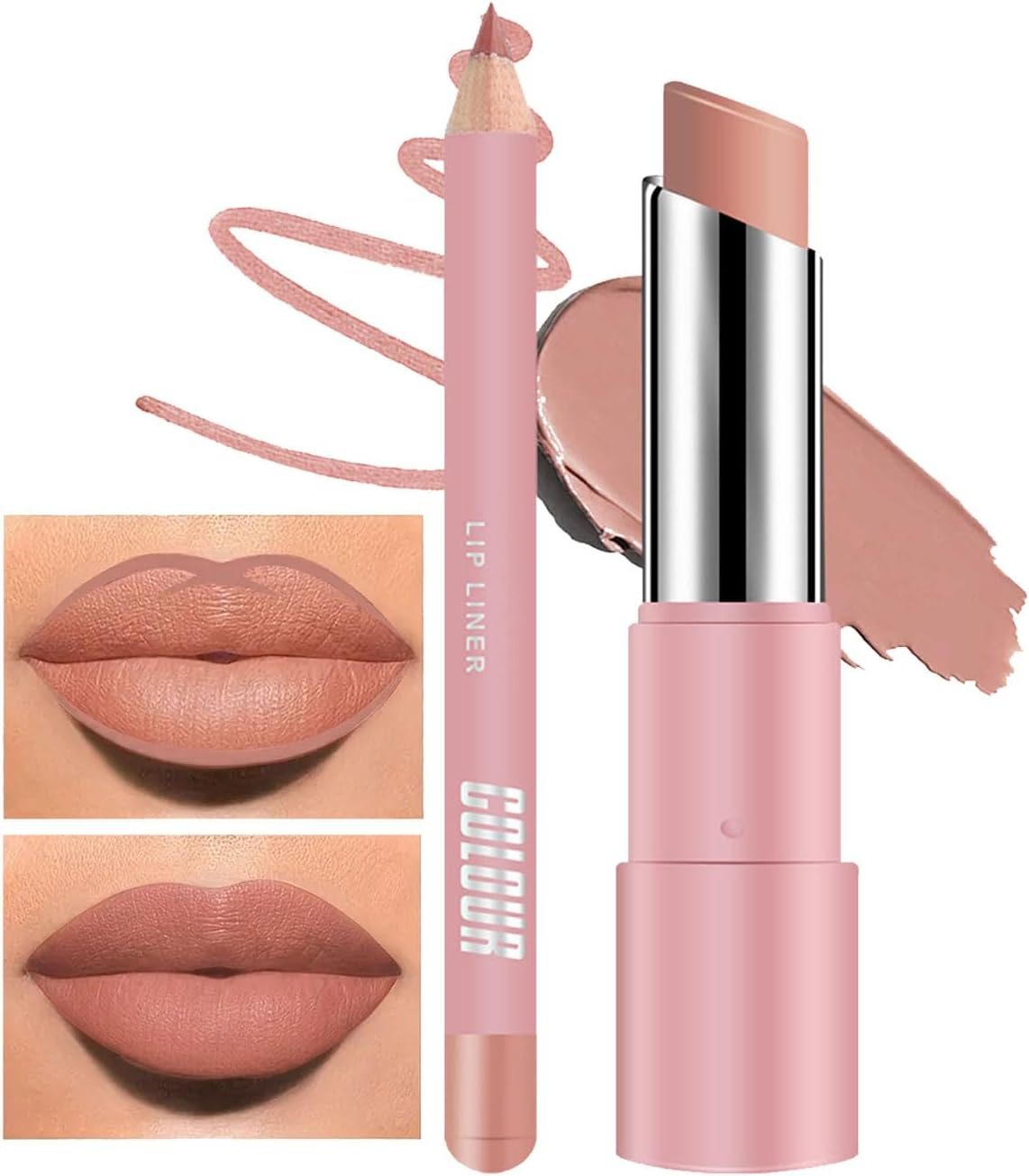 Nude Lip Liner and Lipstick Set, Pink Lip Stain Lip Gloss, Long Lasting Matte Li