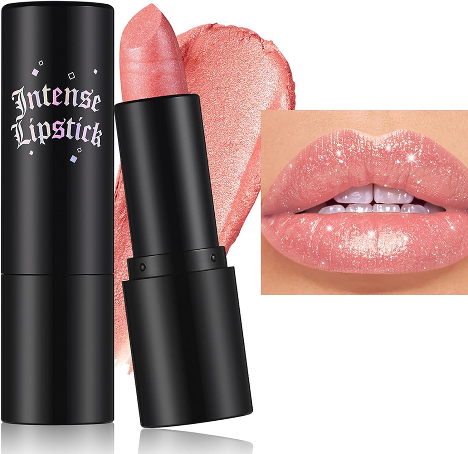 Glitter Lipstick Long Lasting, Nude Pink Lipstick, Shimmer Sparkly Glossier Lip