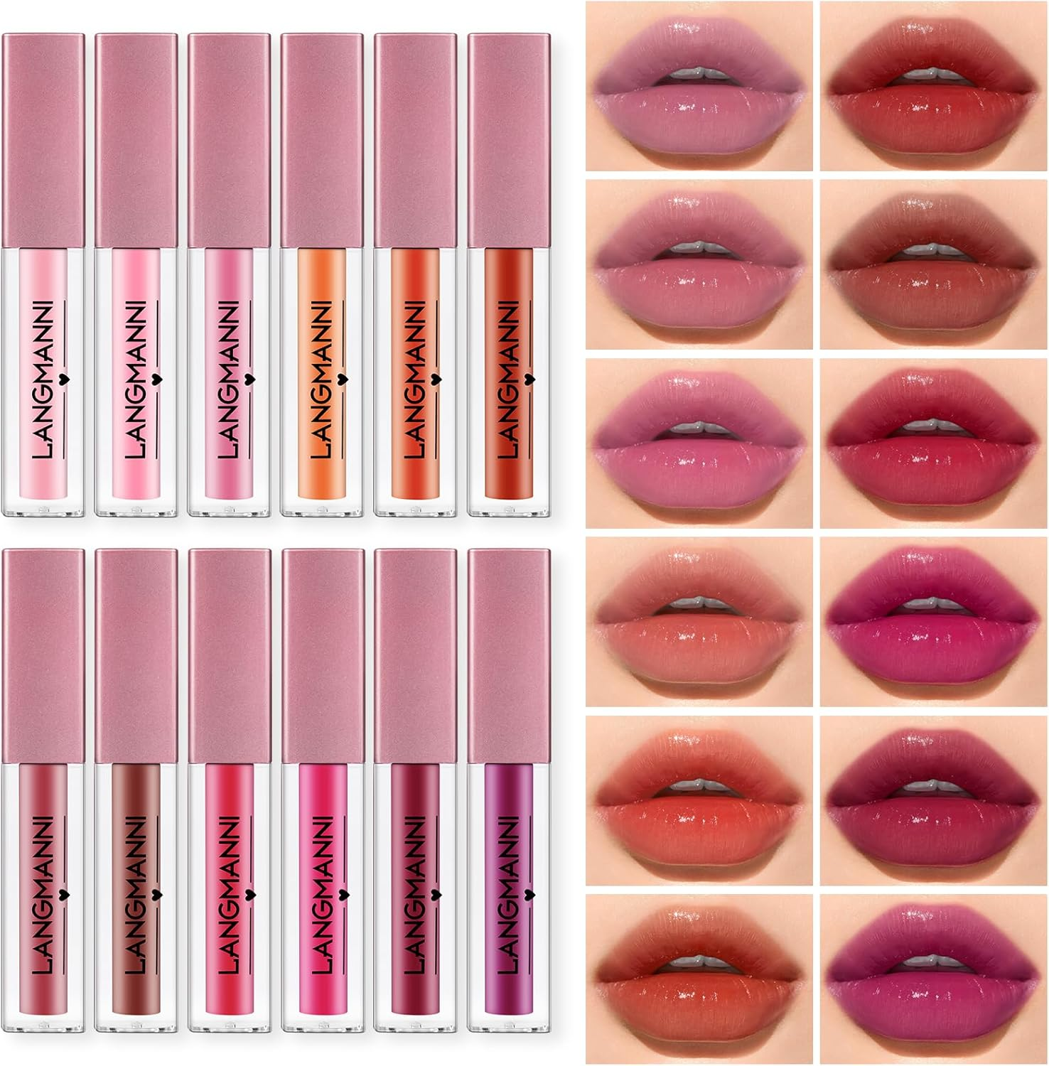 Watery Liquid Lipstick Set, 12 Colors Moisturizing Lip Gloss Set, Velvet Lipglos