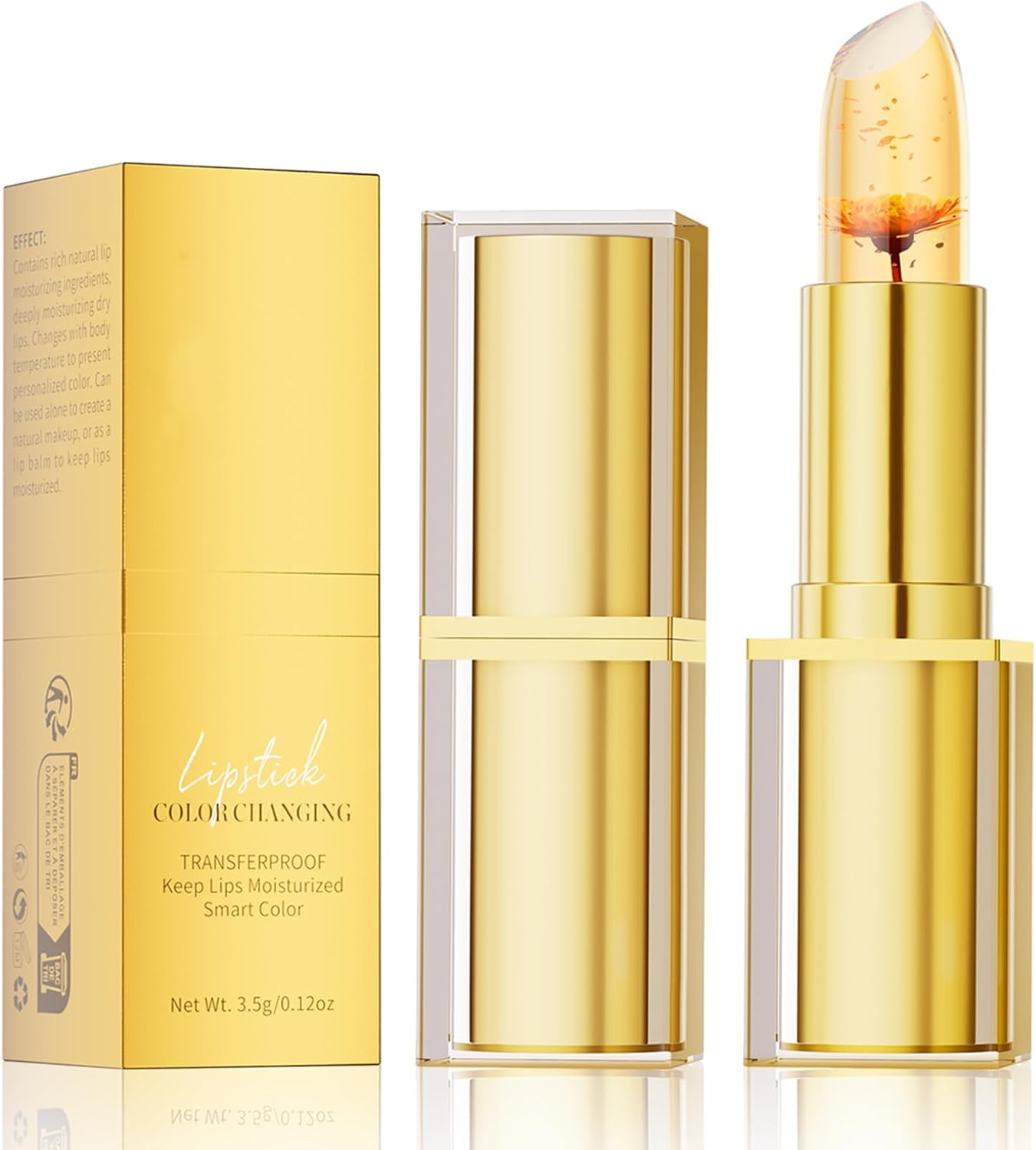 Transfer-Proof Color Changing Lipstick with Gold Foil Flower, Gold Crystal Ph Co