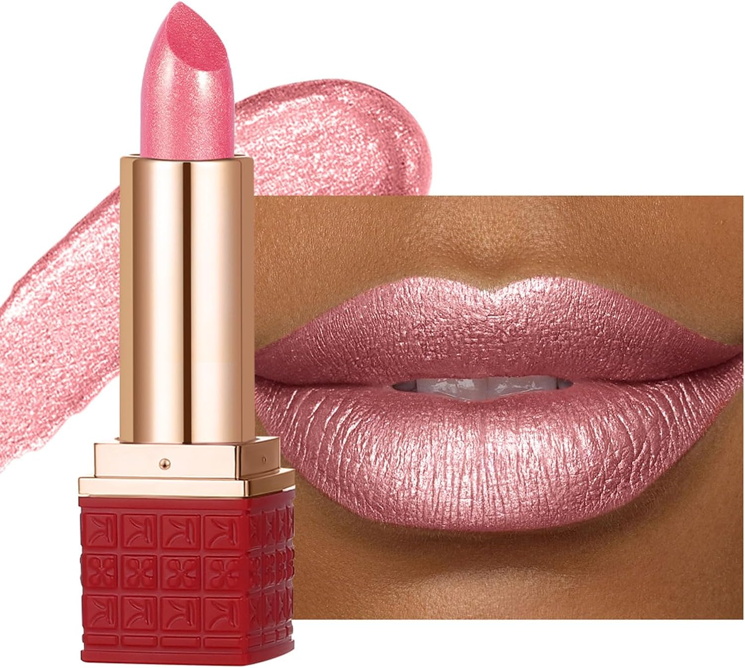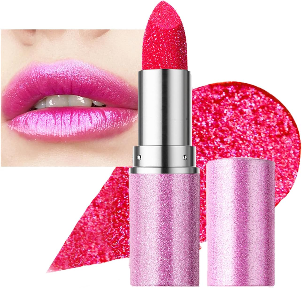 Pink Lipstick, Glitter Metallic Shimmer Lipsticks, Colour Changing Long Lasting
