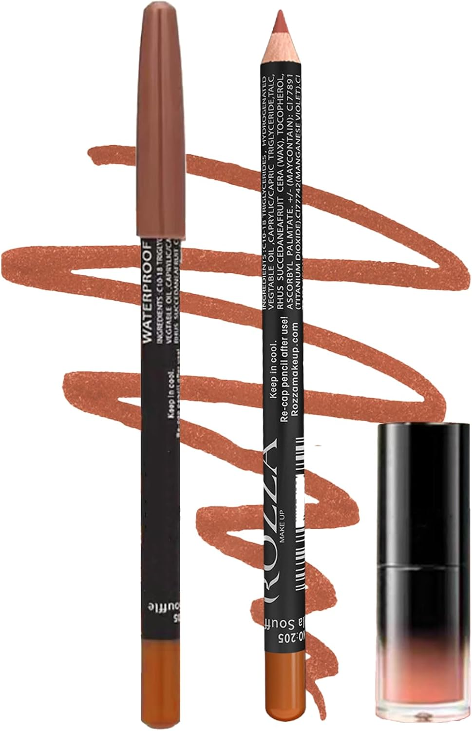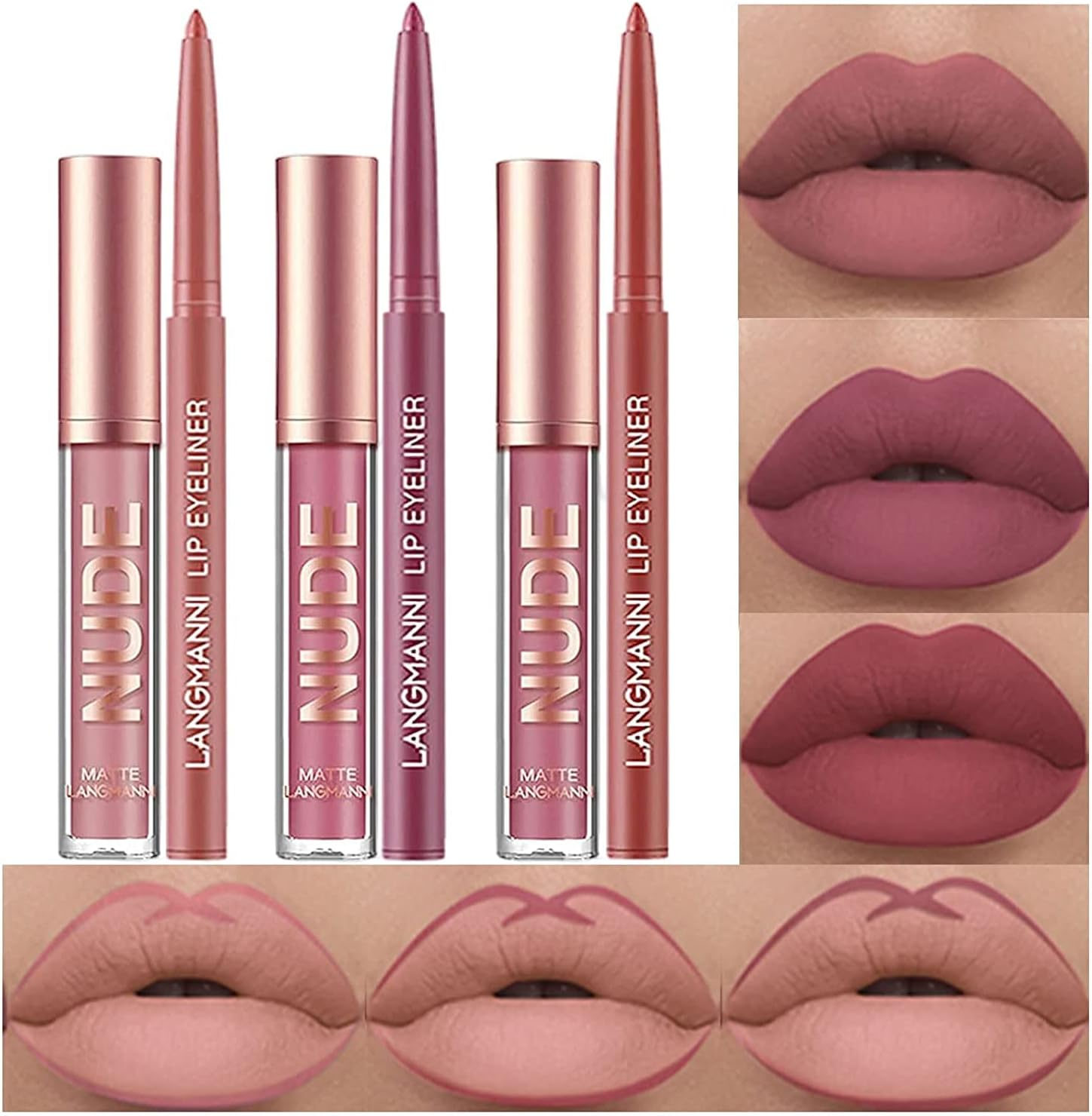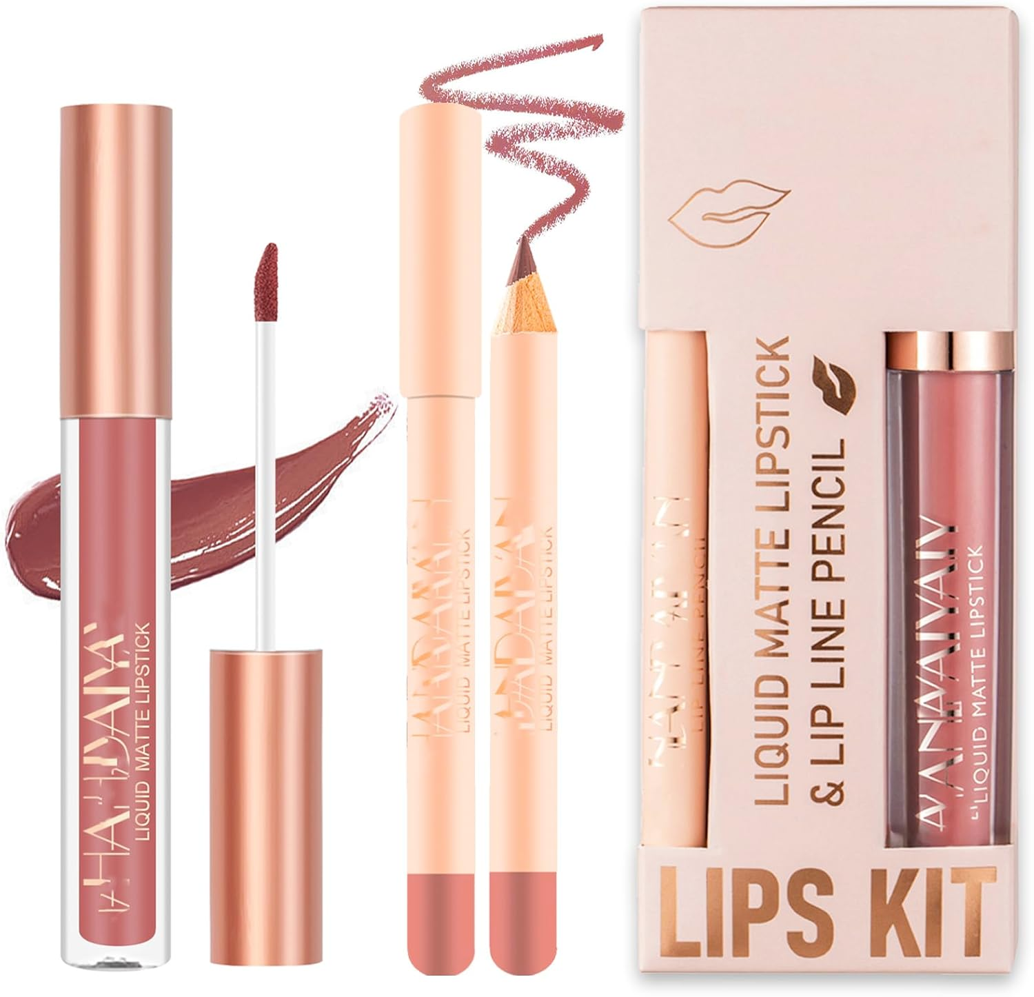 Matte Liquid Lipstick Lip Gloss & Liner Set, Velvety Nude Color, Nude Brown, Plu