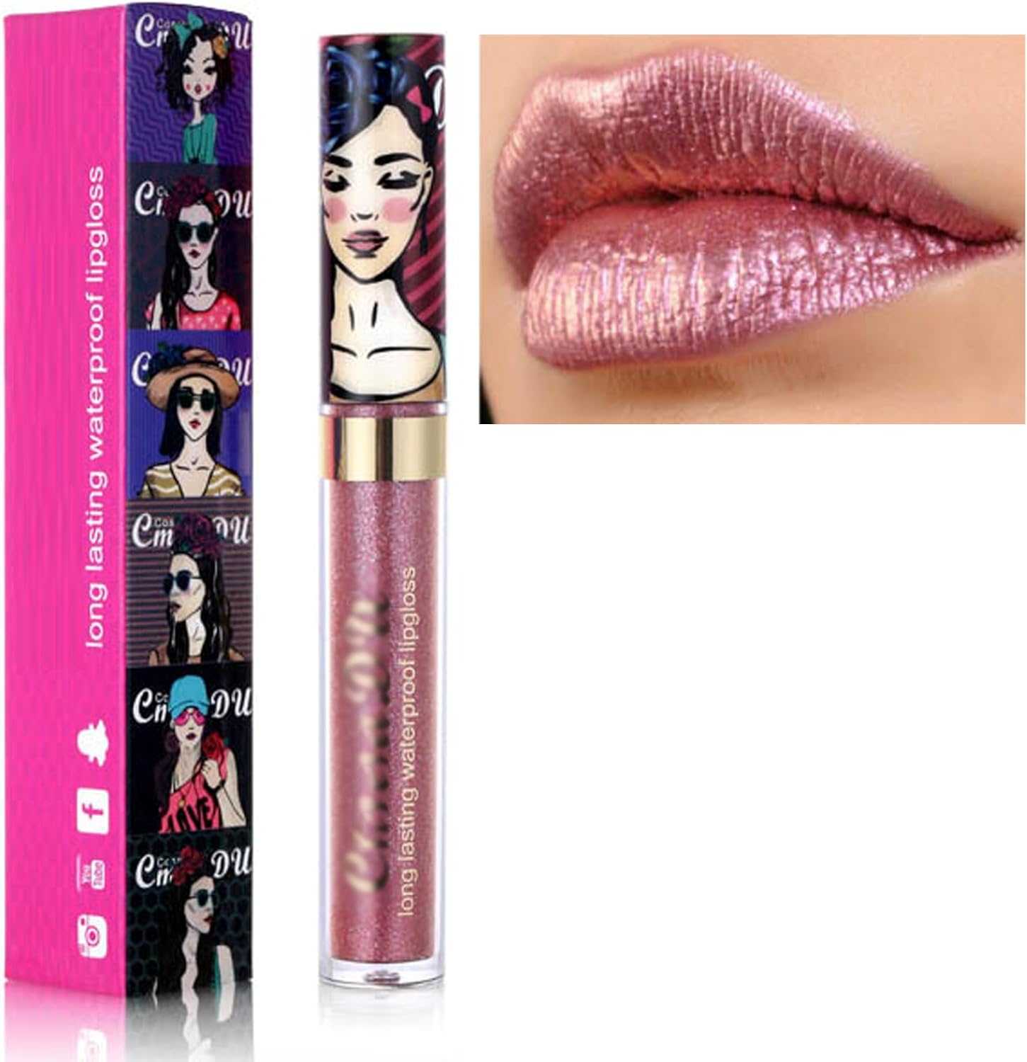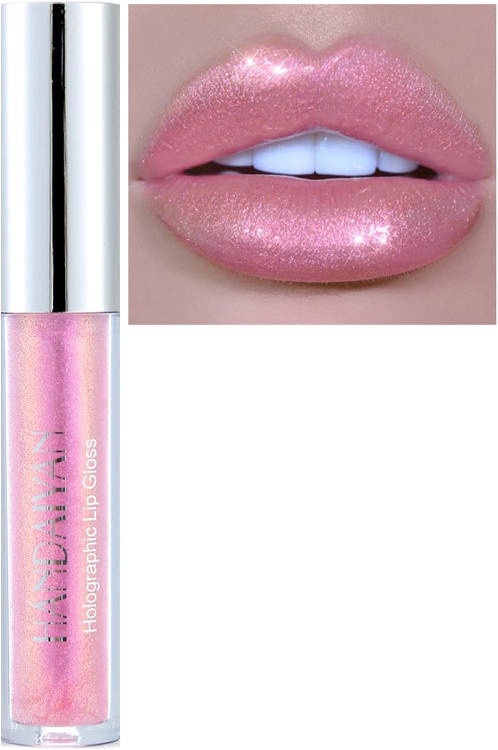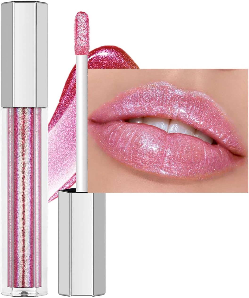 Glitter Lip Gloss, Pink Lipstick Long Lasting Glossier Metallic Shimmer Liquid L