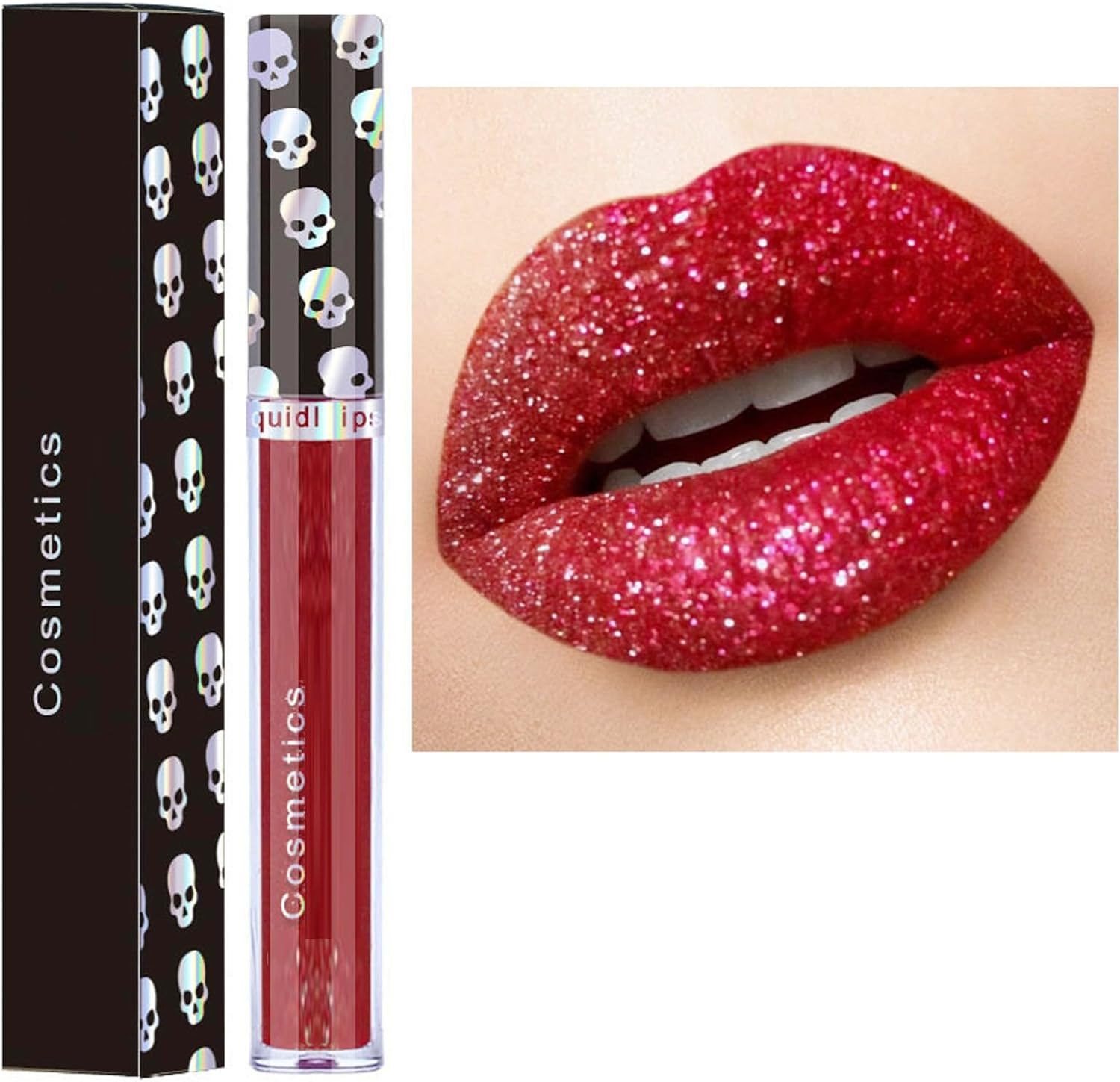 Glitter Lip Gloss, Red Lipgloss Lipstick, Plumping Metallic Sparkly Diamond Glos