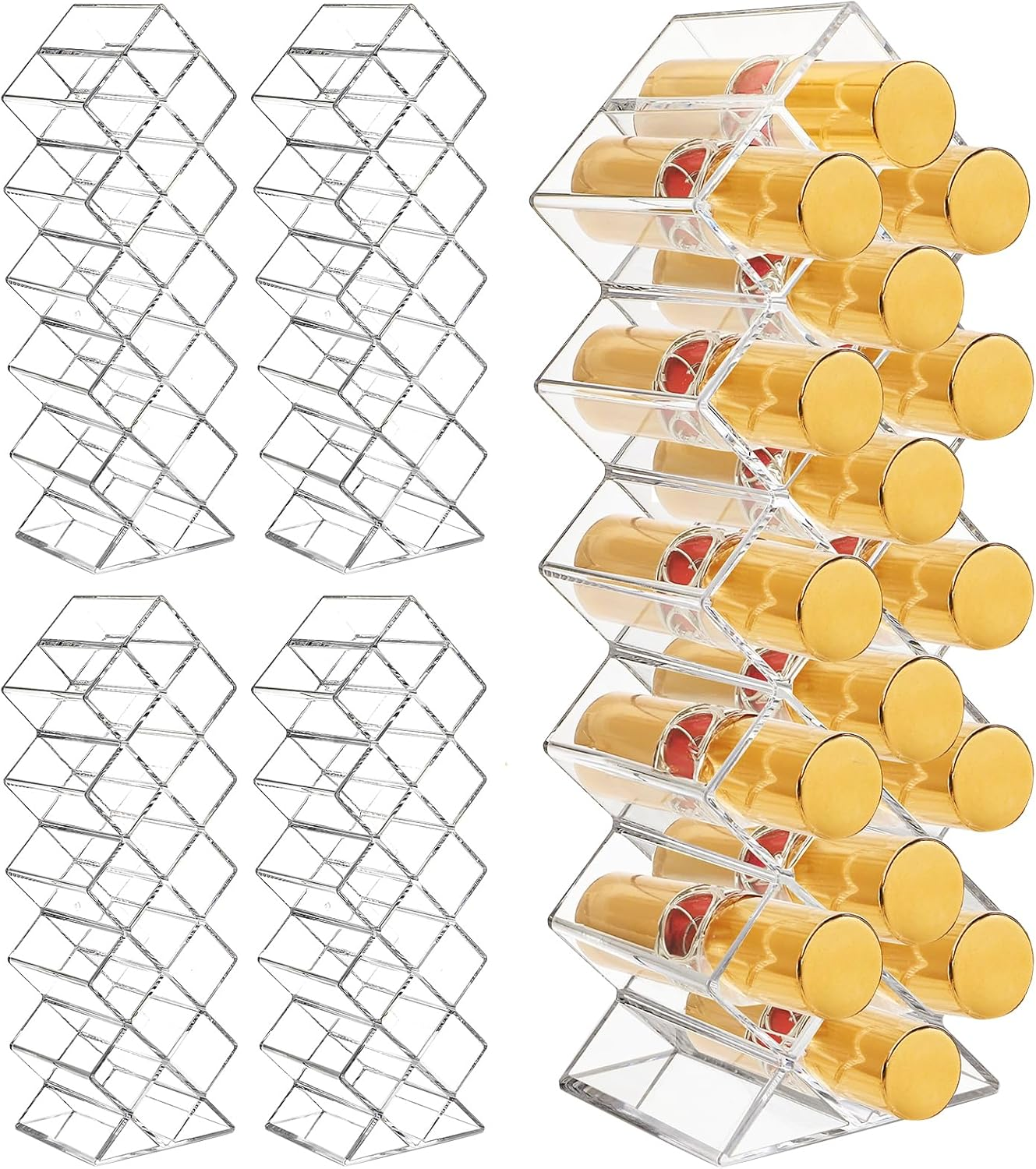 4 Pack Acrylic Lipstick Holder Organizer, 64 Slot Clear Lip Gloss Storage Organi