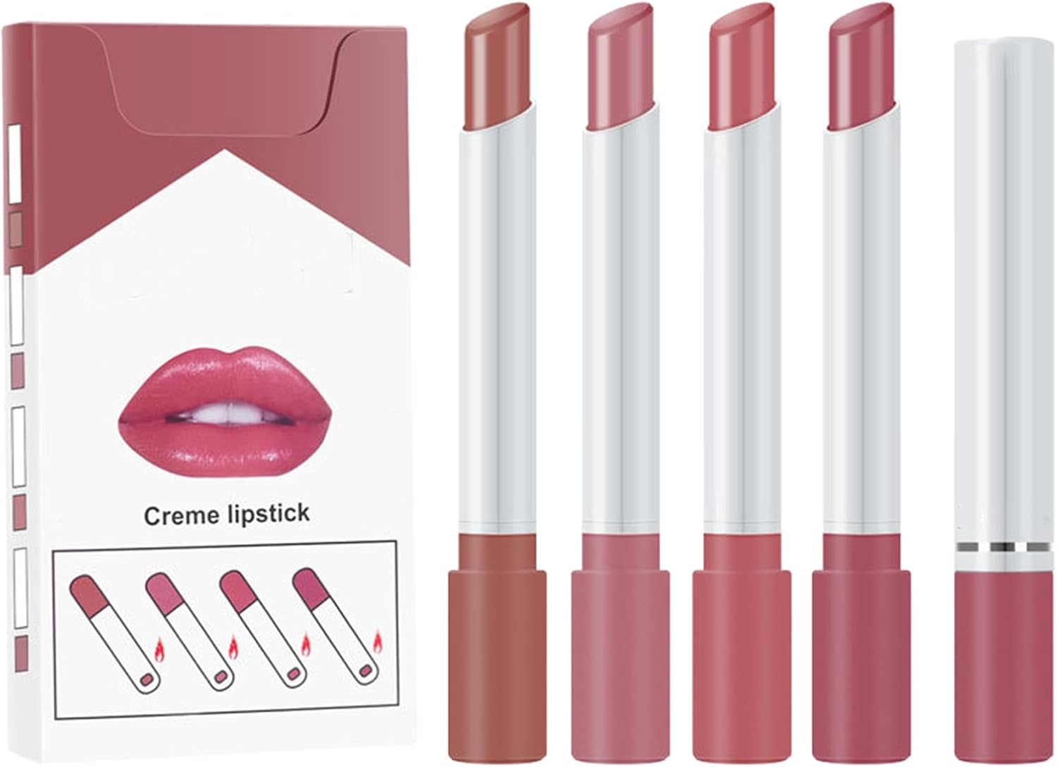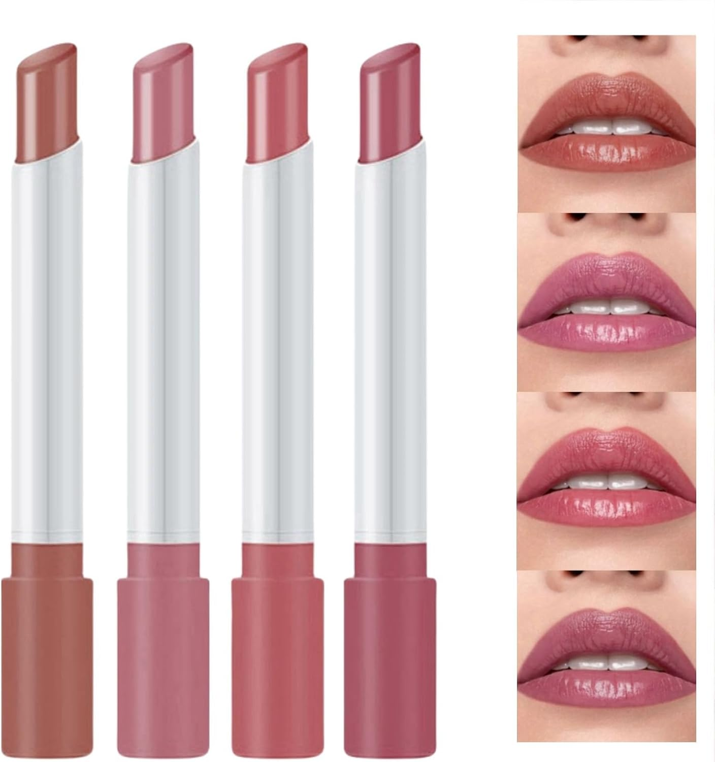 Moisturizing Nude Pink Lipstick Set - 4 Creamy Matte Shades, Long-Lasting & High
