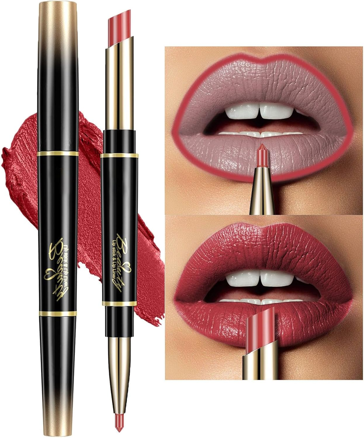 Lip Liner and Lipstick Set - Lip Pencil 2-In-1- Vegan Cruelty Free - Highly Pigm