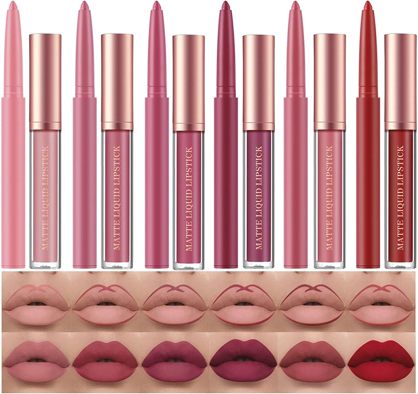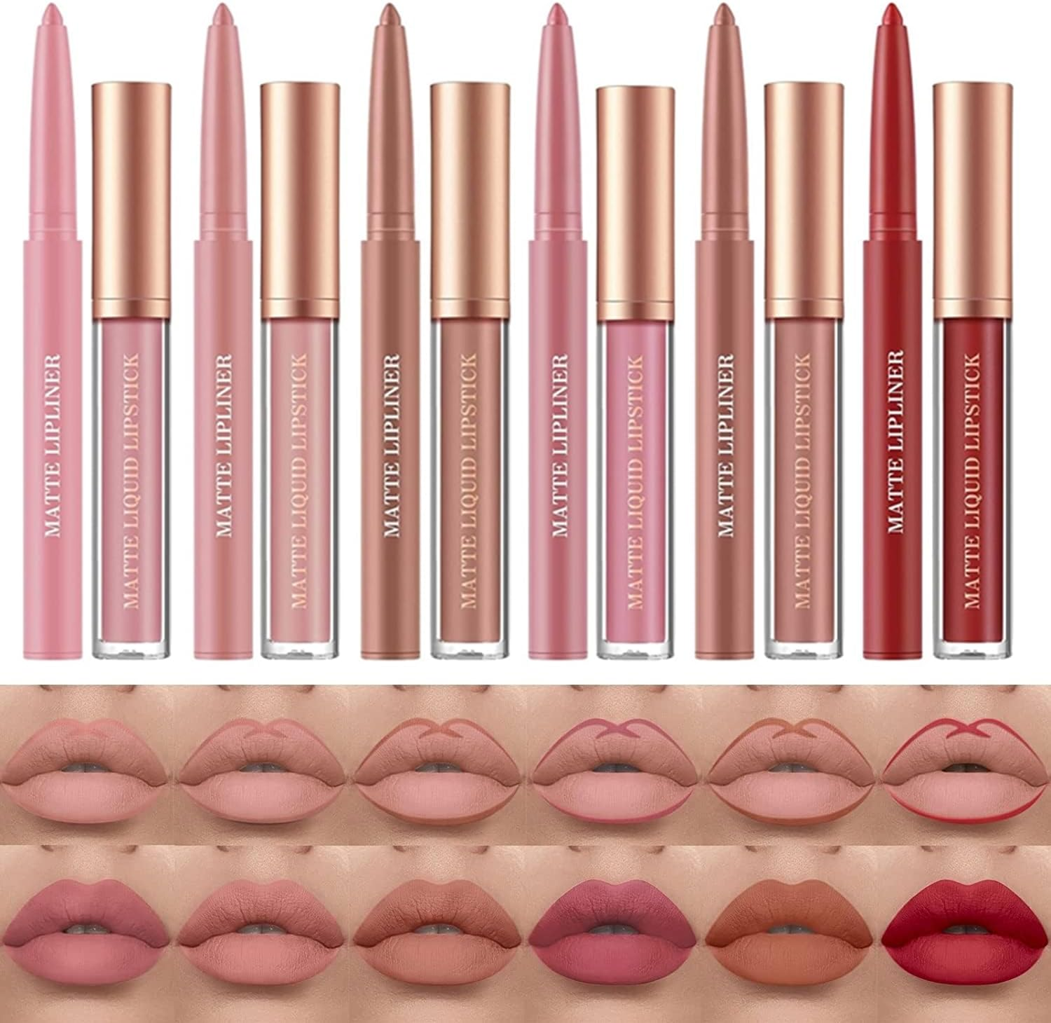 12 Pcs Liquid Lipstick Lipliner Set Nude Lipliner Matte Lipstick Long Lasting No