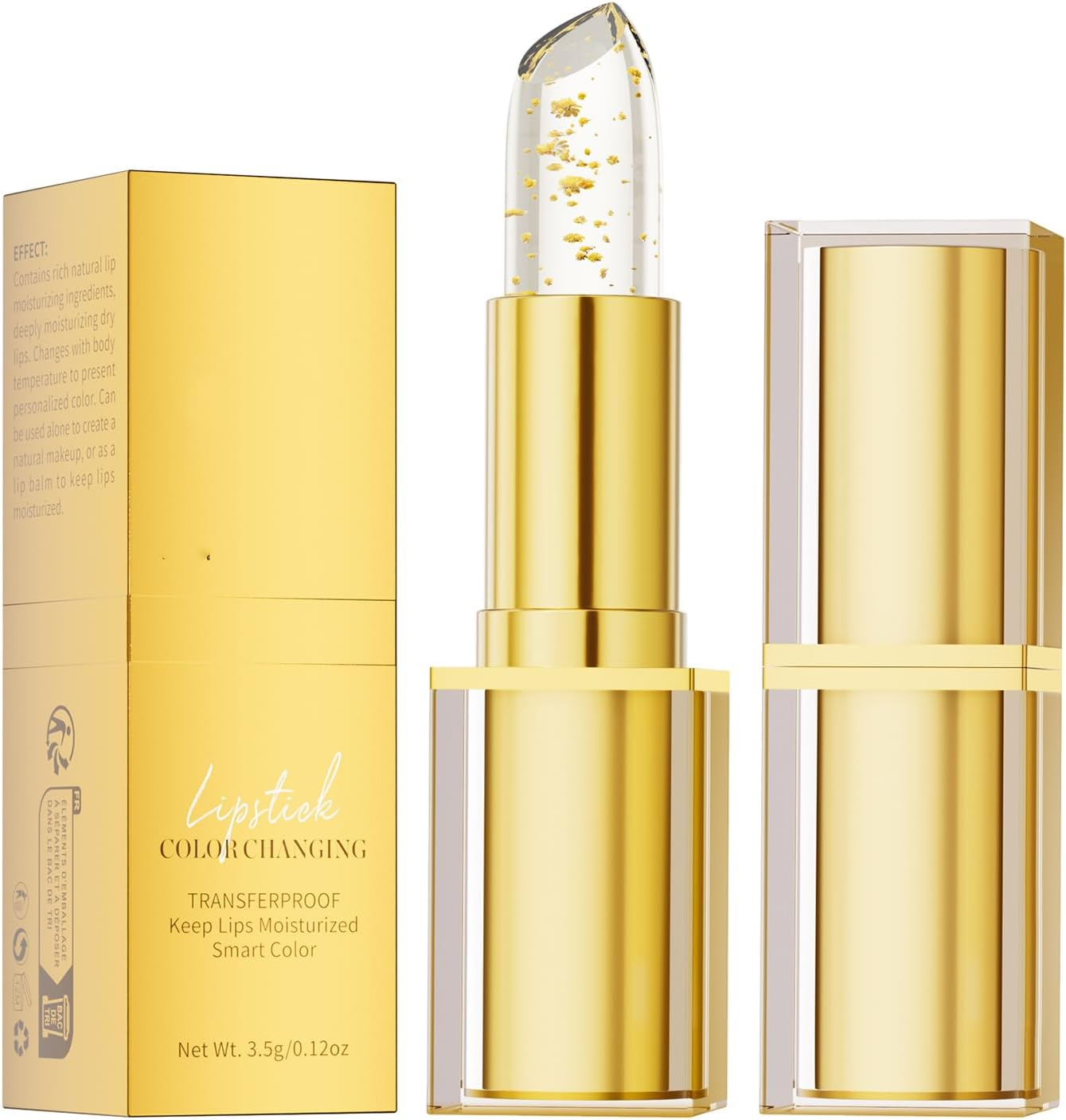 Colour Changing Lipstick, PH Changing Lipstick, Clear Lip Gloss with Gold Foil,