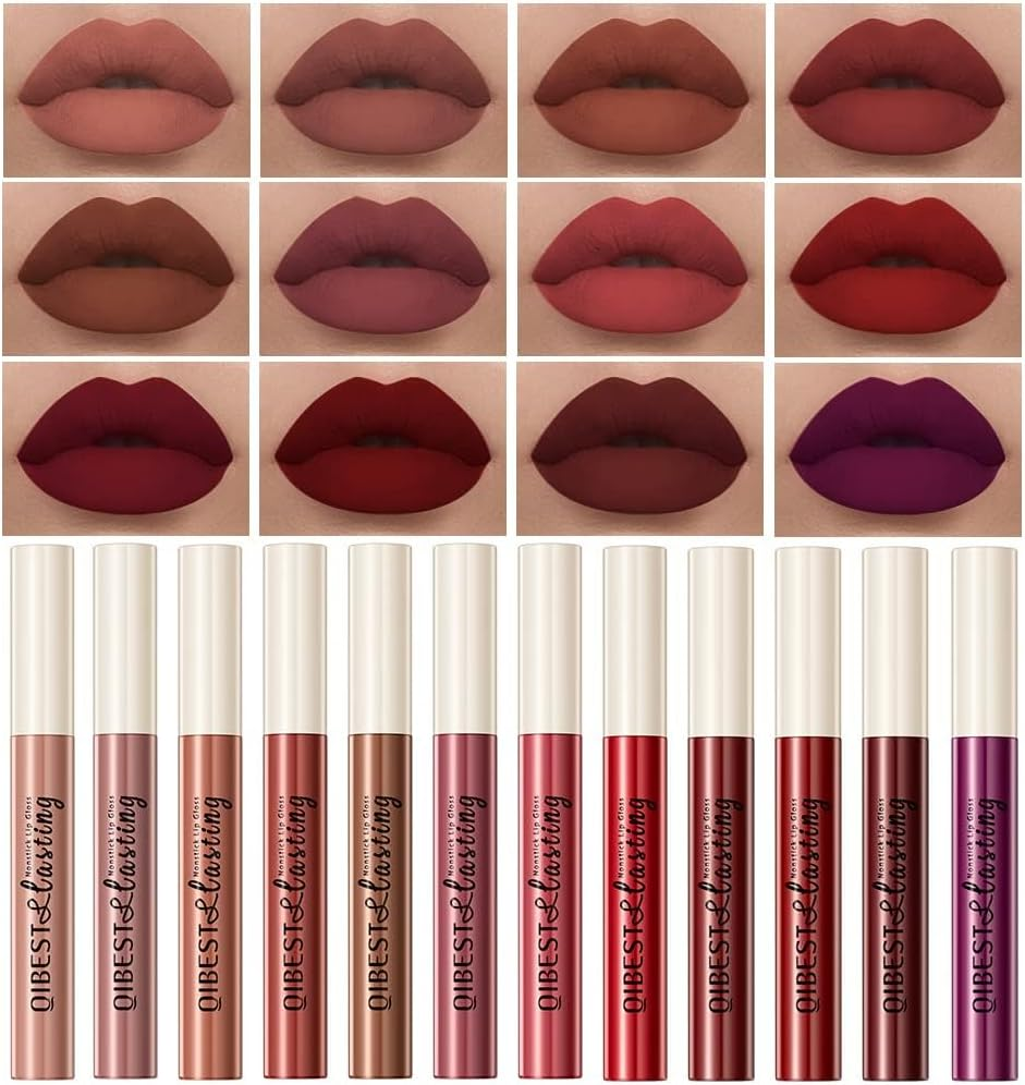 12 Colors Matte Liquid Lipstick Set Velvety Lip Gloss Lip Kit Waterproof Long La