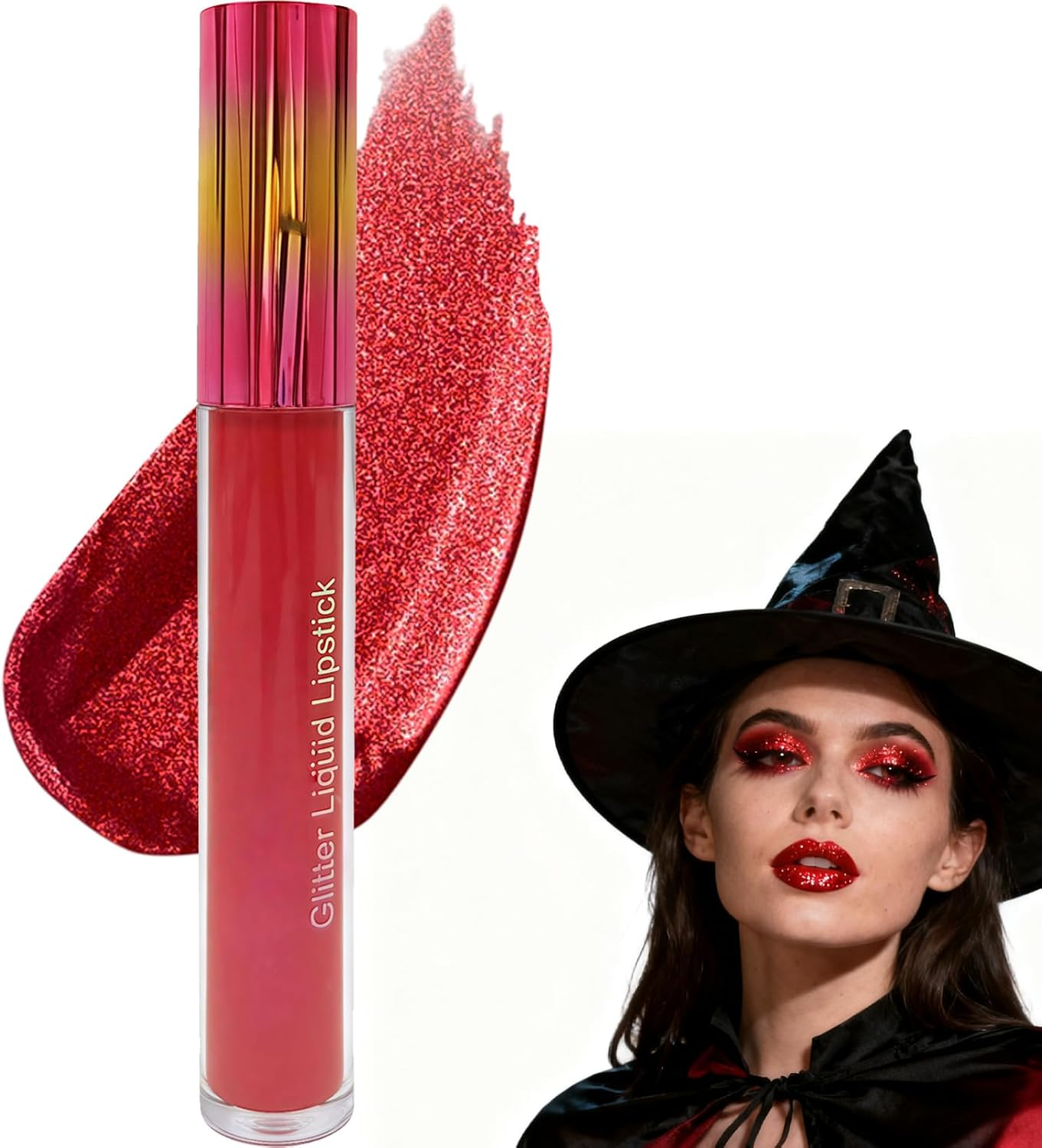 Red Glitter Lipstick - Highly Pigmented Long-Lasting Moisturizing Formula, Water