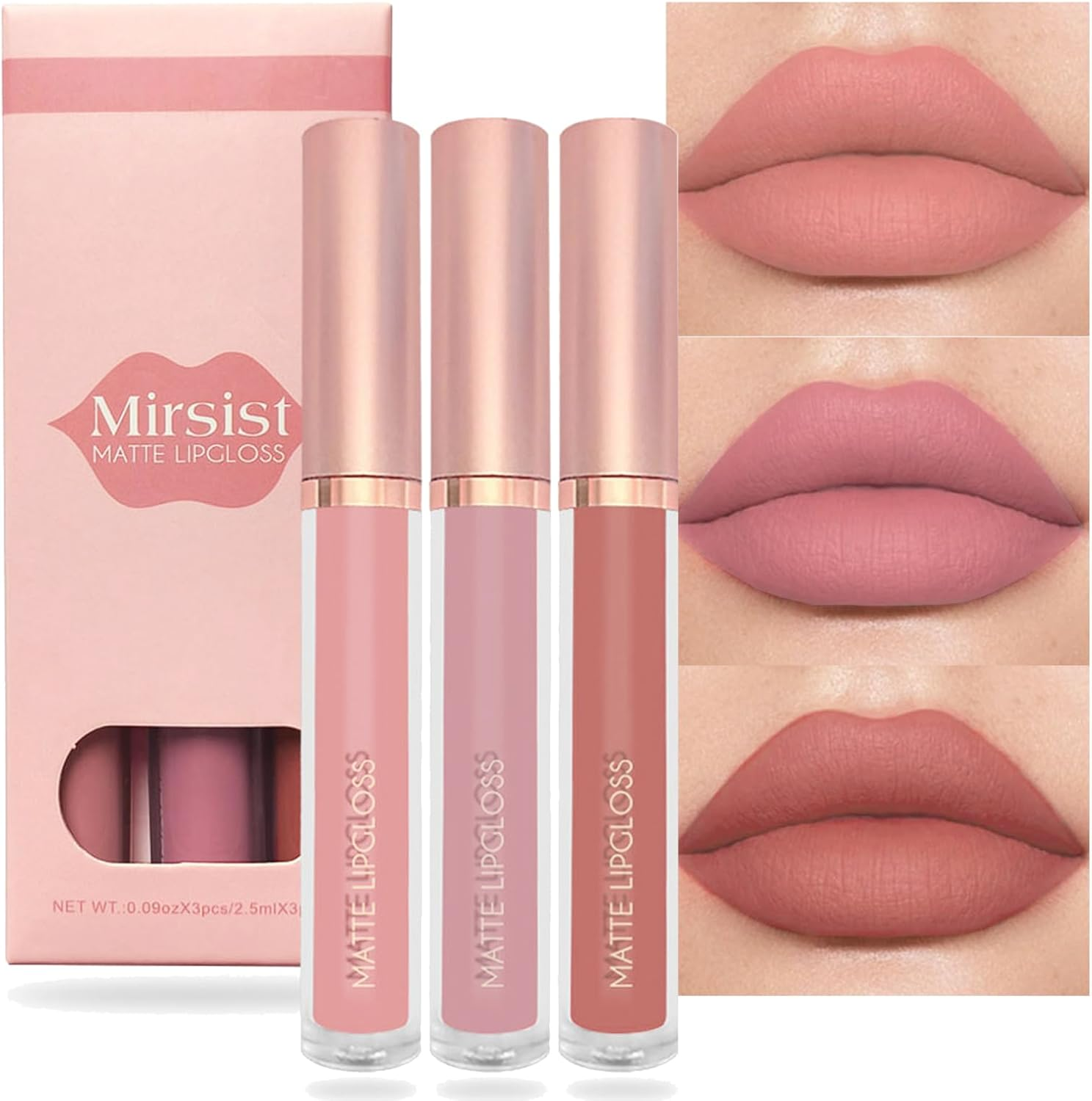3PCS Lip Liner and Lipstick Set - Nude Pink Matte Lipstick & Lip Gloss Kit - Hyd